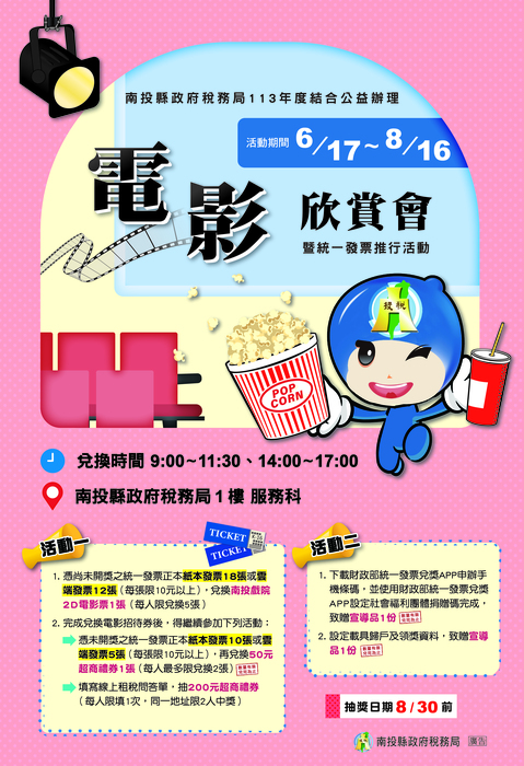 南投縣政府稅務局「113 年度結合公益辦理電影欣賞會暨統一發票推行活動」